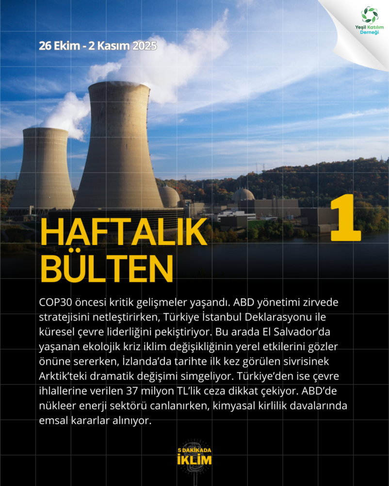 COP30 öncesi kritik gelişmeler yaşandı. ABD yönetimi zirvede stratejisini netleştirirken, Türkiye İstanbul Deklarasyonu ile küresel çevre liderliğini pekiştiriyor. Bu arada El Salvador’da yaşanan ekolojik kriz iklim değişikliğinin yerel etkilerini gözler önüne sererken, İzlanda’da tarihte ilk kez görülen sivrisinek Arktik’teki dramatik değişimi simgeliyor. Türkiye’den ise çevre ihlallerine verilen 37 milyon TL’lik ceza dikkat çekiyor. ABD’de nükleer enerji sektörü canlanırken, kimyasal kirlilik davalarında emsal kararlar alınıyor.