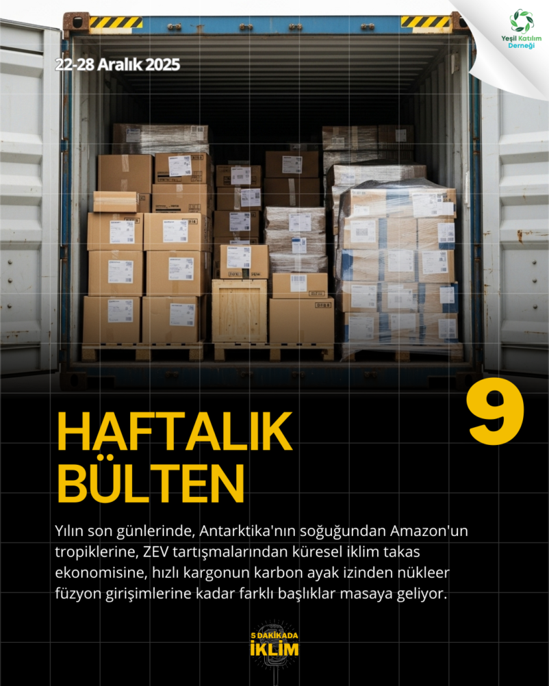 Yılın son günlerinde, Antarktika’nın soğuğundan Amazon’un tropiklerine, ZEV tartışmalarından küresel iklim takas ekonomisine, hızlı kargonun karbon ayak izinden nükleer füzyon girişimlerine kadar farklı başlıklar masaya geliyor.