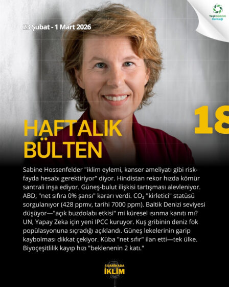 23 Şubat – 1 Mart 2026 Bu bülten 19.915 karakterden oluşuyor. Tahmini okuma süresi: 11 dakika. Merhaba Değerli Okuyucular, Merhaba! “5 Dakikada İklim”in bu sayısında araştırma temelli, bağlantılı ve sadece kaynaklara dayalı zengin içeriklerle karşınızdayız. …